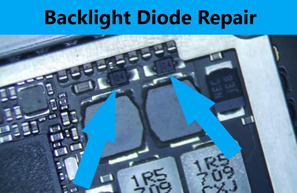 If the backlight is not repaired by restarting the device then most likely you have a faulty screen or a problem on the logic board. We use special microsoldering tools to inspect and test the display and the motherboard in order to find the damaged component. If a logic board component, like a diode, is burned or broken then we can remove, clean and replace the part. If the dark spots are due to a motherboard problem then only a microsoldering tech with logic board repair experience can fix this problem successfully without damaging any other components.